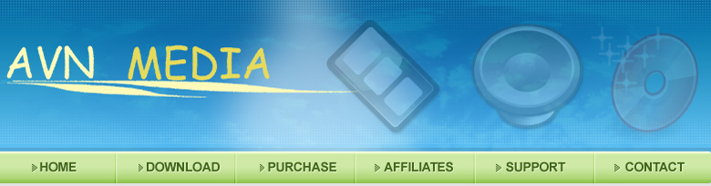 © AVN Media Technologies Ltd.,2008 All rights reserved. AVI Video Converter, MPG MPEG Video Converter, VOB Video Converter, WMV Video Converter, MP4 Video Converter, ipod Video Converter, psp Video Converter, zune Video Converter, iphone Video Converter, 3gp 3g2 Video Converter, OGM Video Converter, RM Video Converter, RMVB Video Converter, FLV Video Converter, WAV Audio Converter, MP3 Audio Converter, WMA Audio Converter, OGG Audio Converter, AMR Audio Converter, M4A Audio Converter, Audio Record, Sound Record, MP3 Record |
